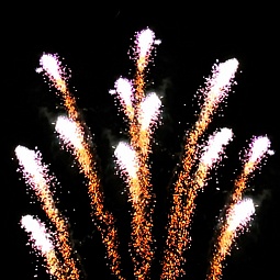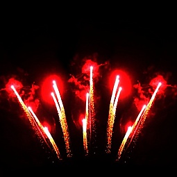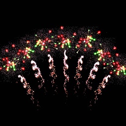 1. Серебряные кометы с пышными трещащими хвостами поднимаются в небо.2. Серебряные вертушки с пышными хвостами раскрываются букетами из разноцветных листьев с трещащими искрами.3. Синие жемчужины раскрываются множеством серебряных рыбок.4. Серебряные водопады разливаются по небу.5. Красная пальма переходит в огромное трещащее облако.6. Серебряные спинеры с пышными хвостами взмывают в небо.7. Россыпь пурпурного и изумрудного жемчуга в сопровождении ослепительного мерцания и золотых трещащих искр.8. Огромные парчовые короны.9. Серебряный спинер раскрывается огромной хризантемой переходящей во множество трещащих сфер.10. Красная пальма с изумрудным мерцанием.11. Серебряная мерцающая пальма с зеленым пионом.12. Серебряная пальма с красным георгином и синими жемчужинами.13. Красный георгин переходит во множество трещащих сфер.14. Серебряные искристые волны переходят в трещащую хризантему.15. Красные кометы с искристыми шлейфами.16. Красно-зеленый георгин.17. Огромное трещащее облако с красными мерц