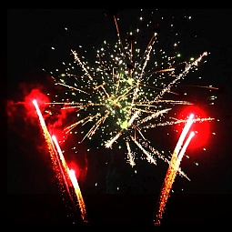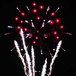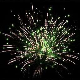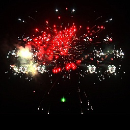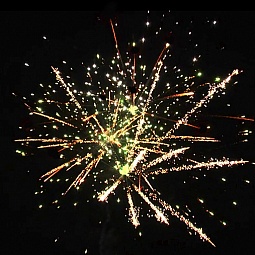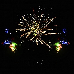 1. Красно-зеленая пальма с белым мерцанием.2. Золотая пальма с зелеными жемчужинами.3. Золотая пальма с красными жемчужинами.4. Золотая пальма с синими жемчужинами.5. Золотая пальма с белым мерцанием.6. Трещащая пальма с белым мерцанием.7. Парчовая корона с красными и зелеными жемчужинами.8. По бокам красные кометы с искристыми хвостами, в центре парчовые короны с изумрудными жемчужинами.9. По бокам зеленые кометы с искристыми хвостами, в центре белые мерцающие ивы с рубиновыми жемчужинами.10. Парчовая корона с белым мерцанием.11. Парчовая корона с изумрудным мерцанием.12. Парчовая корона с пурпурным мерцанием.13. Золотая пальма переходит в огромное трещащее облако.14. Белая трещащая ива с красным мерцанием.15. Трещащая ива с красными жемчужинами.16. Парчовые волны с зеленым мерцанием.17. По бокам красные жемчужины раскрываются серебряными букетами, в центре белая мерцающая ива с красными жемчужинами.18. По бокам раскрываются разноцветные букеты, в центре золотая трещащая ива с изумрудным мер