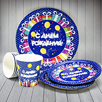 Набор бумажной посуды "С ДР" 6 тар, 6 ст, 6 коллп, 1 гирл.