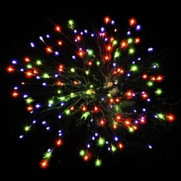 1. Красный георгин.2. Разноцветный пион.3. Россыпь красного жемчуга с белым мерцанием.4. Облако мерцающих и трещащих искр.5. Серебряные мерцающие звёзды.