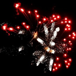 1. Красные волны с серебряным мерцанием.2. Зеленые волны с трещащими искрами.3. Пурпурные волны переходят в серебряный дождь.4. Серебряные волны переходят в огромную хризантему.
