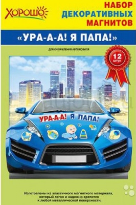 Магниты "Ура! Я папа!" голубой набор декоративные