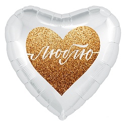 Шар (18''/46 см) Сердце Люблю (золотой глиттер) Белый 1 шт