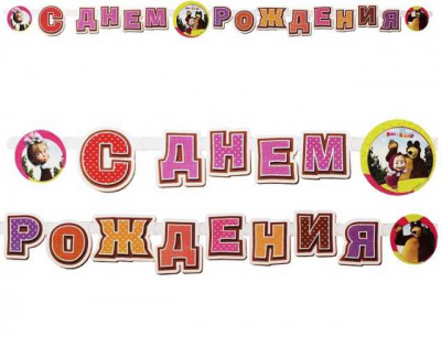 Гирлянда-буквы С ДР Маша и Медведь 220 см/М