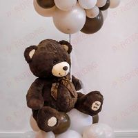 Композиция из шара (48 см) с любой вашей надписью и разнокалиберных шаров, цвета: коричневый, латте, белый; Плюшевый мишка (60 см); Размер композиции 175см.
