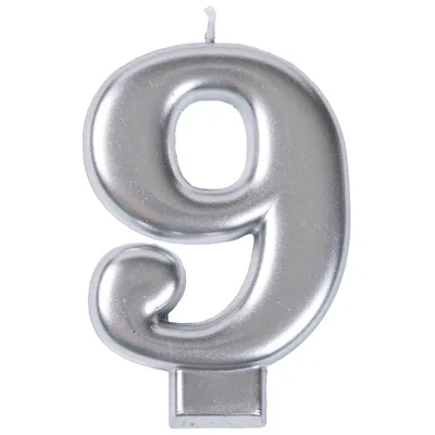 Свеча цифра 9 Серебро 8см